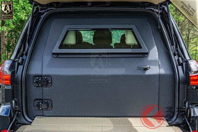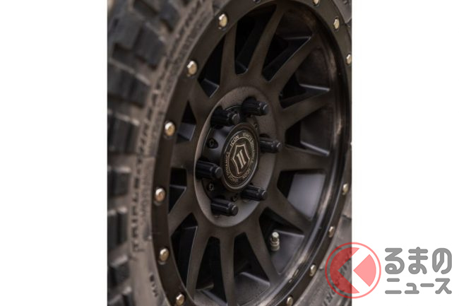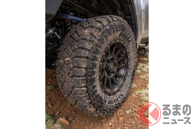 タイヤはR/T(ラギッドテレーン)。オンロード向けのA/T(オールテレー)とオフロード向けのM/T(マッドテレーン)それぞれの特徴を兼ね備えたタイプで、サイズは幅12.5インチ、外径33インチ、内径17インチとなっています。リアはフルサイズのスペアタイヤ&ホイールと5ガロンのジェリ缶を搭載しています。