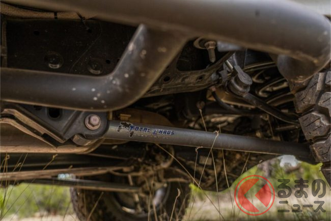 この物物しい雰囲気をさらに増しているのが、2.5インチ以上のリフトアップを図った足回りです。