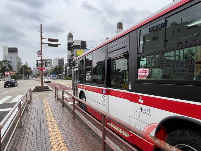 通常、市バスといえば一般の車両に混ざって車道を走り、左側(歩道寄り)の停留所に停車するのが一般的です。