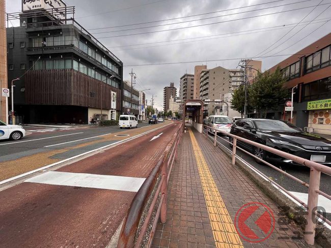 しかし基幹バスレーンは、道路の中央寄りをバスが走ります。