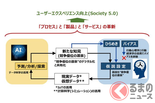 「HAICoLab」は「Humans and AI collaborate for digital innovation」をもとにした造語で、横浜ゴムは「人間特有のひらめき」や「発想力」と「AIが得意とする膨大なデータ処理能力との協奏」によって新たな発見を促し、デジタル革新を目指すとしており、「ADVAN V03」においても現実データとシミュレーションにより生成、収集した仮想データを用いたAIによる予測や分析、探索を行い、開発に活用したとのことです。