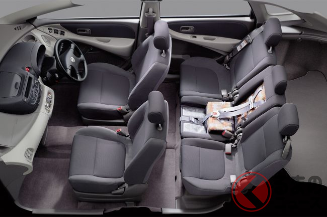 ファミリーユーザーの多くが好むミニバンは、いざとなれば多人数乗車可能な点が魅力ですが、広い空間ゆえに少人数で乗る際に無駄が多いのも事実です。そんななか「前に3名乗れる」画期的なクルマがかつて販売されていました。