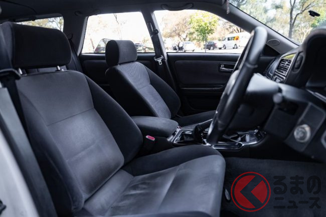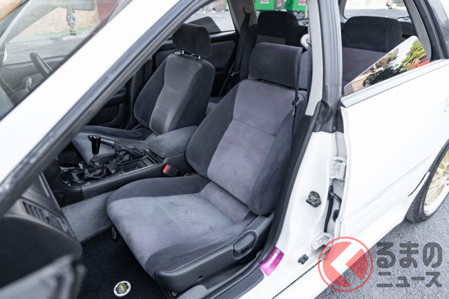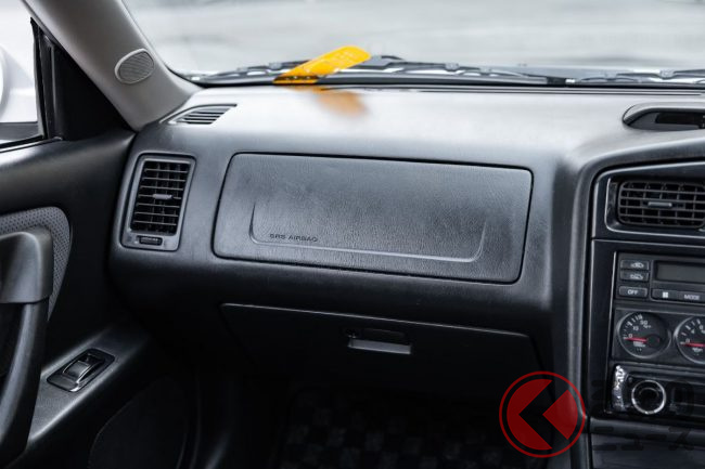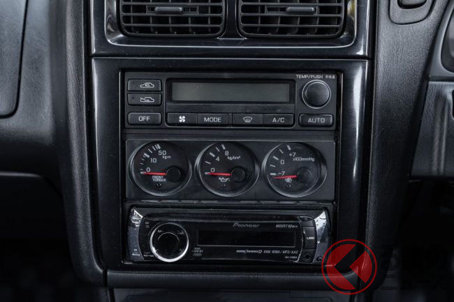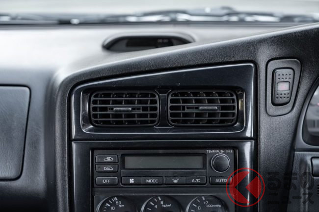 インテリアでは、ステアリングがMOMO製、シフトレバーも社外品に変更されていますが、ダッシュボードやシートなどは25年の年月を感じさせないほど良い状態となっています。