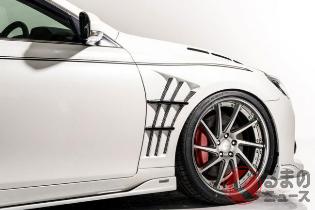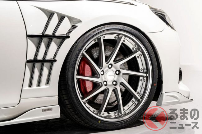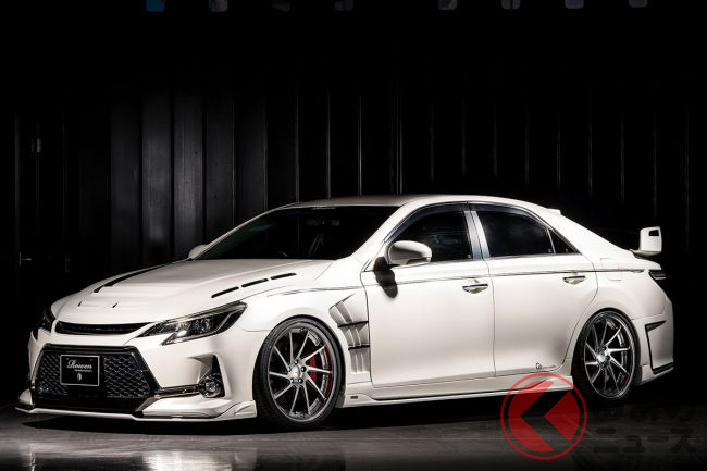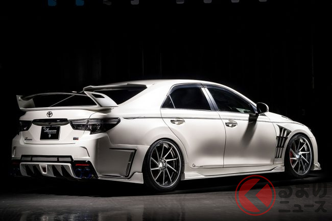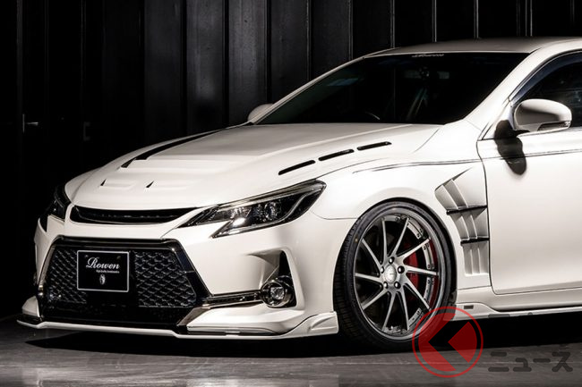 ド迫力顔のトヨタ「マークX」が凄い! エアロ装着した「最強4ドアセダン」 めちゃ攻めた「フロントフェンダー」を追加発売へ