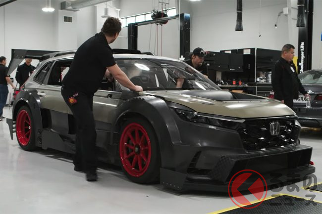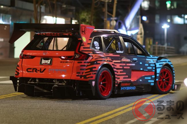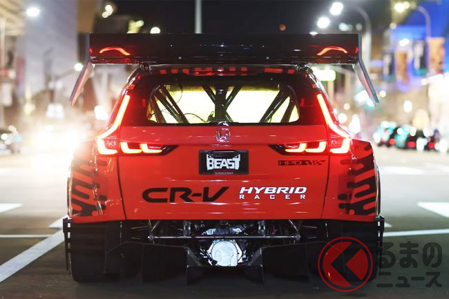 ホンダ新型「CR-V 爆速仕様」公開! 超“ド派手”ウイング&ワイドボディ採用マシンはまさかの「手作り」!? 米法人が製作中映像を公開
