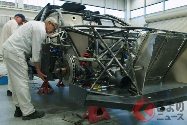 今回公開された動画では、チューブフレームに車体を架装する工程や、派手な装飾を考案する様子、エンジンをはじめパワートレインを組み付ける作業などが映されています。