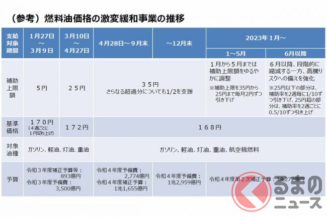 原油価格の高騰を受け、政府は2022年1月から石油元売り企業に補助金を出す価格抑制策を実施しています。