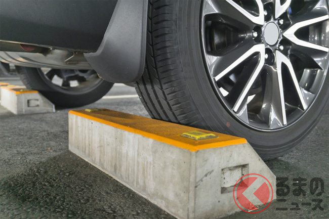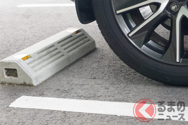 駐車場にクルマを駐車するとき、クルマ止めがある場合は、タイヤをクルマ止めに当たるまでバックするのが一般的です。