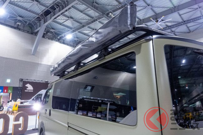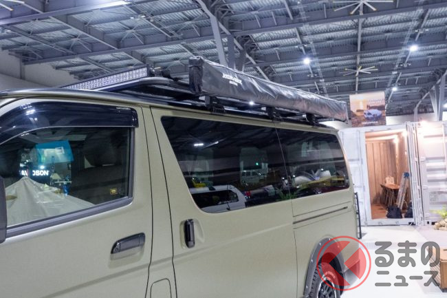 その会場内に置かれていたのが、GOODSPEED VANLIFEの提案する「ハイエース」カスタムです。同社オリジナルという丸目ヘッドライトなどを取り付けることで、クラシックかつSUV的なタフさを備えた“SUVハイエース”へと変貌を遂げています。