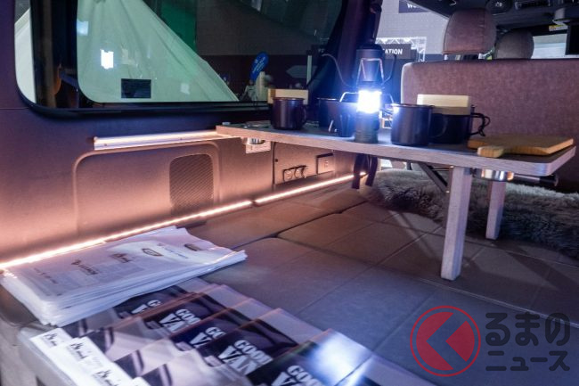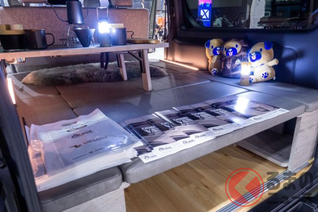 インテリアでは、後部はベットキットや机が搭載されるなどすっかり車中泊仕様となっています。