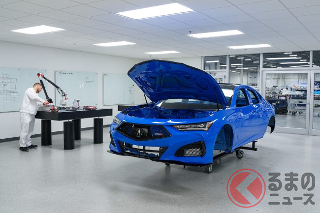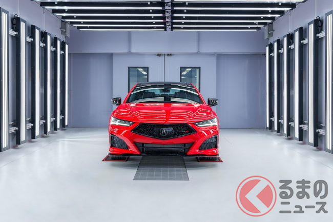 全長5m級! ホンダ「爆速スポーツセダン」を実車展示! 「NSX」譲りの“強心臓”も設定する「TLX」を青山本社で公開へ