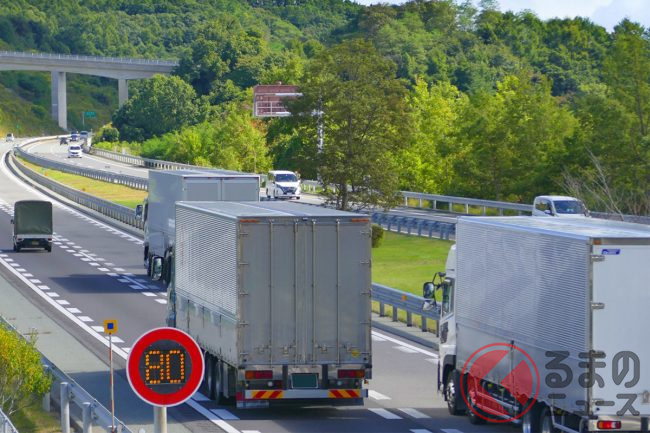 高速道路の追い越し車線を、大型トラックがゆっくりと走行していることがあります。走行車線にも大型トラックがいると、流れがせき止められたような状態となってしまい、後続車としては困惑してしまいます。