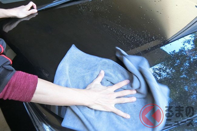 ドアミラーやグリルの隙間など、狭い場所に水気が残ってしまうことも多いので、マイクロファイバークロスのような吸水性の高いものでしっかり水分を拭きあげることが重要です」(洗車&コーティング専門店 S氏)