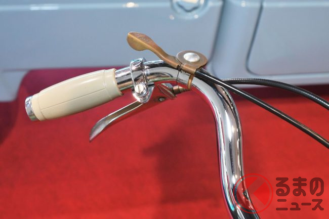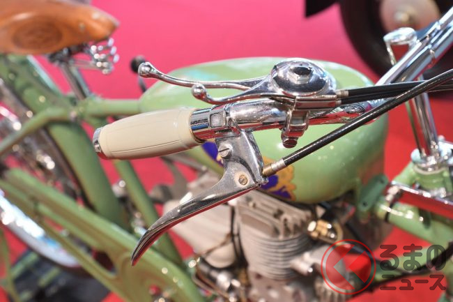 そのほかの見どころとして、流線型が美しい形状のアルミ製のティアドロップ型タンクは、浜松に身を置く遠州軽合金(現在のエンケイ)製。
