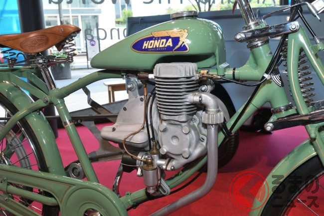 やっぱりホンダ! 初開発の「エンジン」が凄かった! 伝統の「ウィングマーク」付けた “自転車みたい” なモデル「ホンダA型」とは