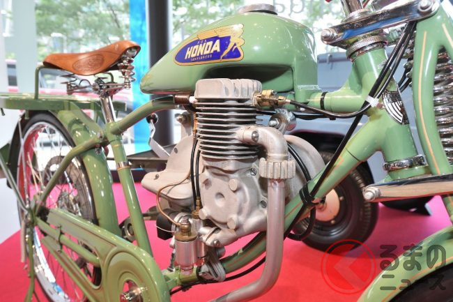 ホンダは元々、このホンダA型の発売前に、陸軍から払い下げられたエンジンを自転車に搭載する通称「バタバタ」を販売していましたが、そのエンジンが品薄となったことでエンジンの自社開発を決意。