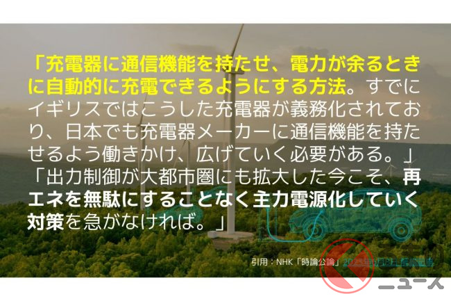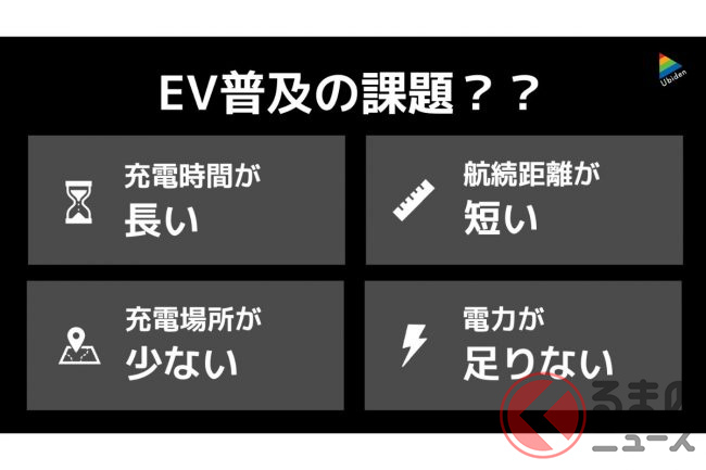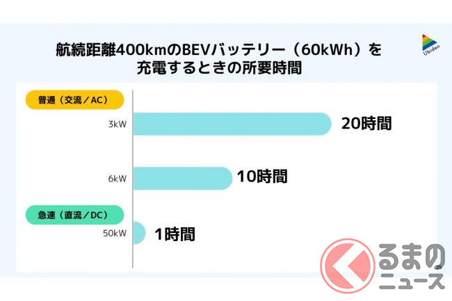 自宅で充電できる環境があれば、これらの問題は大きな課題とはならず、EVの急速充電はあくまでも補助的・緊急的な役割であり、自宅駐車場での普通充電によるインフラ設備の拡充が、EVの利便性や普及を進める上で大きな役目を担う、と説明しました。