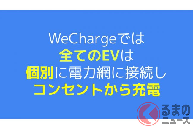 「WeCharge」は、QRコード付きのコンセントにスマートフォンをかざすだけで普通充電をいつでも使用することができます。ユビ電は、全てのEVは個別で電力網に接続し充電する形が理想と考え、「WeCharge」を従来のシェア型の共有充電ではなく、電気供給網への負荷を避け余剰電力を活用しながら充電できる、駐車場1区画ごとの個別設置型の専用充電網サービスであるとしています。