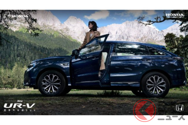 ホンダが「最上級」クーペSUVを公開! 超豪華な精悍ボディ! 全幅2m級の「UR-V」青山で実車お披露目