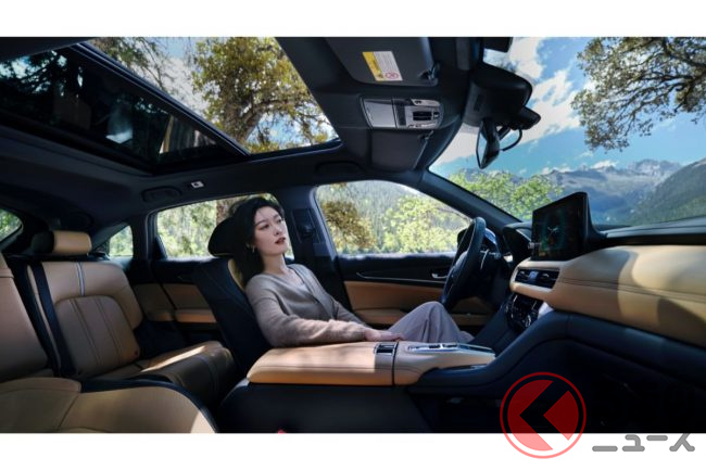 頭上には、サンシェード付きのスライド式大型パノラマサンルーフが備わり、室内を明るい雰囲気に保ちます。