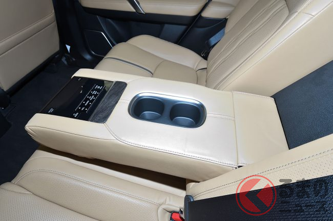 外観は、ディテールにメッキ加飾を施した豪華な仕立て。足元に備わるタイヤも245/55R19と大径サイズで、ワイドなスタンスを強調します。