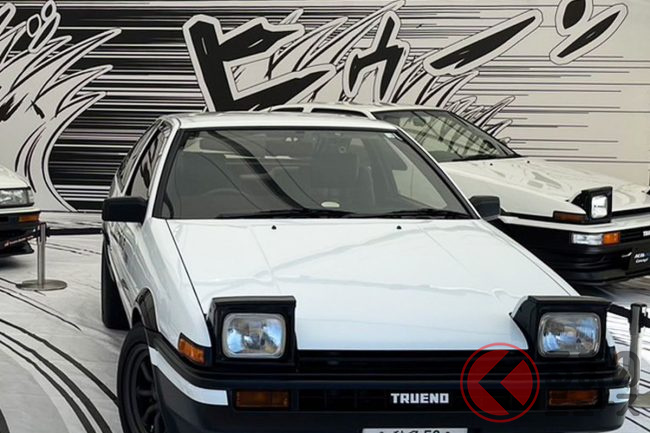 またピカピカに光輝くノーマルのAE86は、頭文字Dの主人公・藤原拓海が操るAE86を再現した仕様でドアには「藤原とうふ店(自家用)」のステッカーが貼られていました。