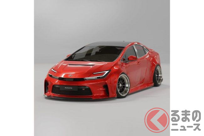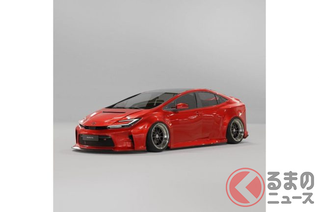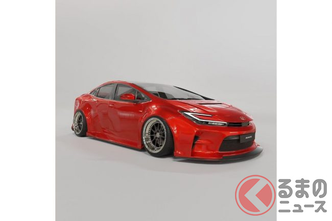 “86顔”もよく似合う! トヨタ新型「プリウス」のド迫力ワイドボディ仕様!? 超シャコタン化されたCGがめちゃカッコイイ