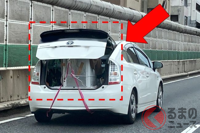 多くの荷物を積み込むなどしてトランクが閉まりきらず、紐などで開かないように固定して走行しているクルマを見かけることがあります。この状態は違反ではないのでしょうか。