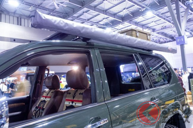 また、ルーフにはガッチリとしたラックを装備。大きめのボックスやカーサイドタープも備えており、街中からアウトドアまで幅広く使えそうなプラドになっています。