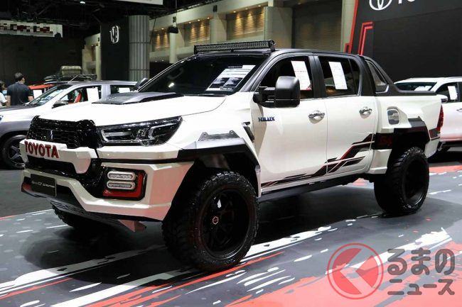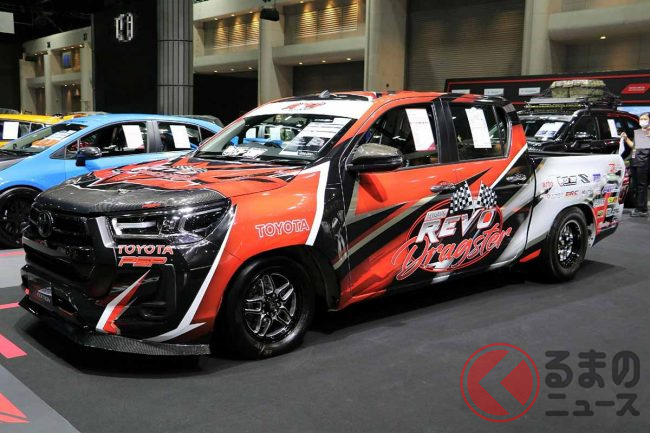 タイのバンコクで「バンコクオートサロン2023」が開催。トヨタの現地法人が、ピックアップ「ハイラックス」のカスタムカー「ハイラックスレボ・ドラッグスター」を展示しました。