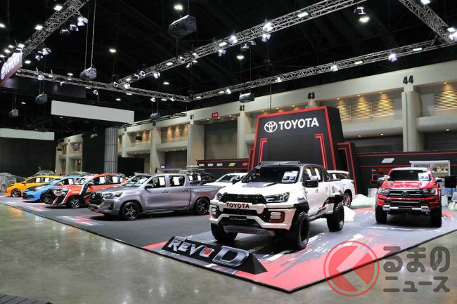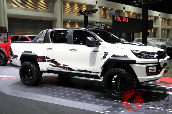 タイのバンコクで2023年6月28日から7月2日までの5日間、東南アジア最大級といわれるカスタムカーショー「バンコクオートサロン2023」が開催。トヨタ現地法人(トヨタ・モーター・タイランド)のブースでは、ピックアップトラック「ハイラックスレボ」のカスタムカーが複数台披露されました。