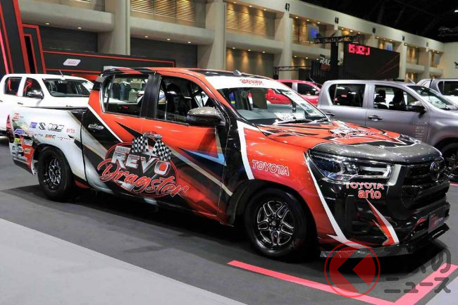 500馬力も可能!? トヨタ「爆速ハイラックス」実車展示! トヨタ「ハイラックスレボ・ドラッグスター」タイに登場