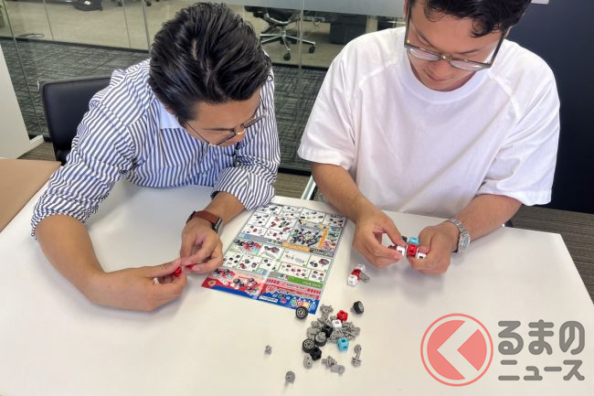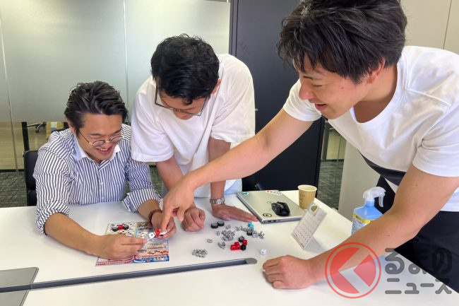リポブロックを送ってきたT氏は「子どもはもちろん、大人でも夢中になれるんですよ」と話していましたが、果たして本当に夢中になれるのか、昼食休憩中の編集部所属のおじさんたちを呼んで遊んでみることにしました。