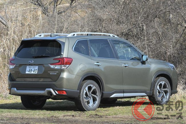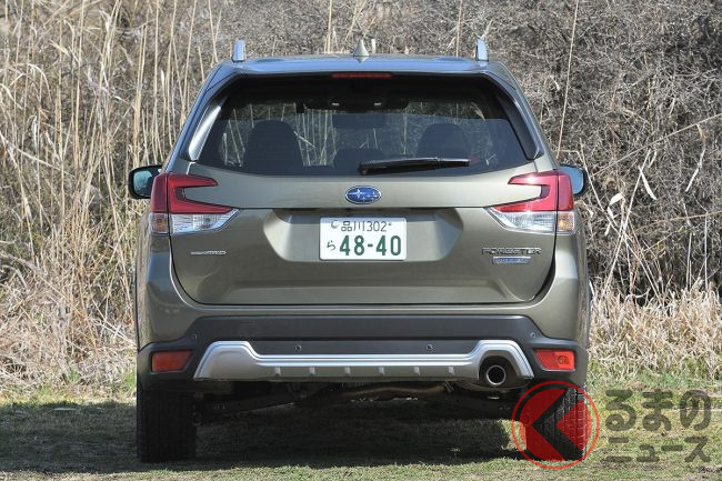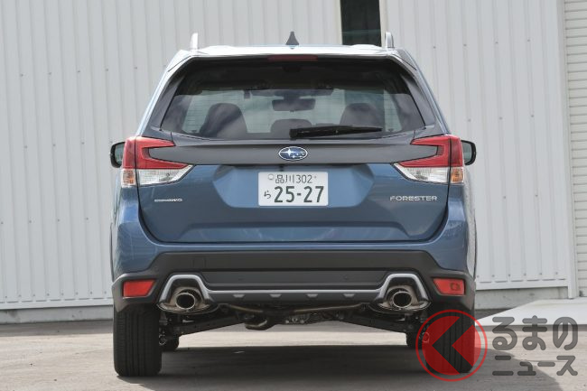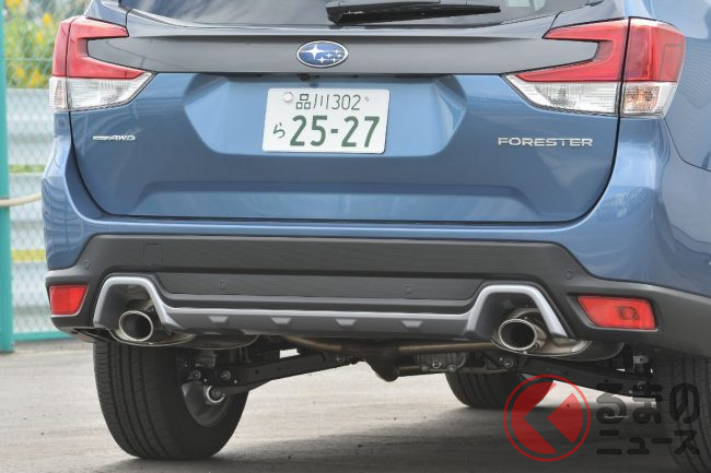 スバルのSUV「フォレスター」は、2リッターNAエンジンと「e-BOXER」を組み合わせたハイブリッド車と1.8リッターターボ車を設定しており、ハイブリッド車のマフラーは1本出し、ターボ車のマフラーは左右2本出しです。