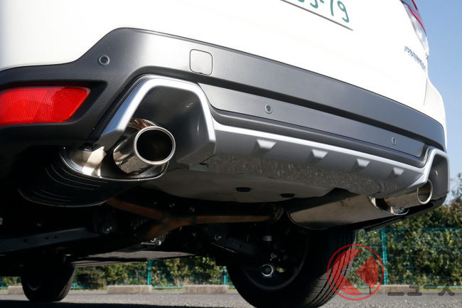 そのため、フォレスターは、ターボ車は出力確保のため2本出し、ハイブリッド車(NA)は1本出しとなっています。