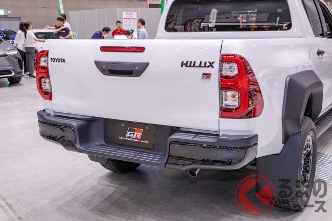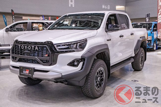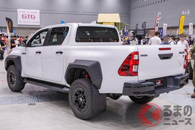 「あれ、なにか違う…」 トヨタの「謎のハイラックス」実車展示! 張り出し感ヤバめ… 正体は?