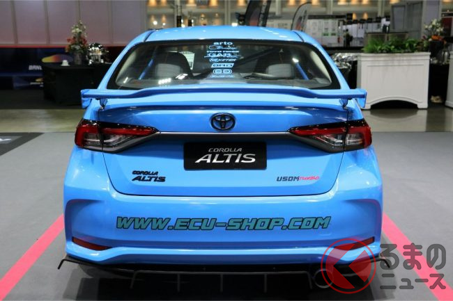 ターボ化で250馬力超え!? 鮮烈ブルーのトヨタ新型「カローラアルティス」登場! ド迫力エアロの「Corolla ALTIS USDM TURBO」泰で実車展示