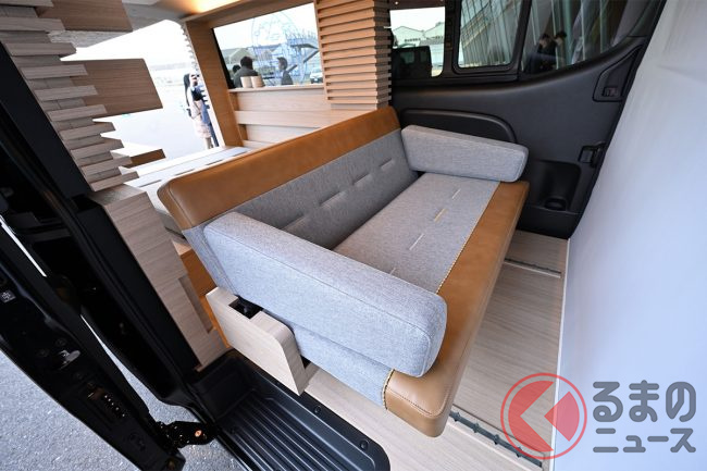 シートもリビングのソファ風で、クルマの座席とは思えないほどの仕上がりです。