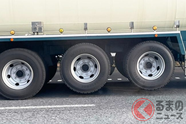 大型トラックに付いている「謎の浮くタイヤ」どんな意味? 故障じゃないの? タイヤが浮くワケとは