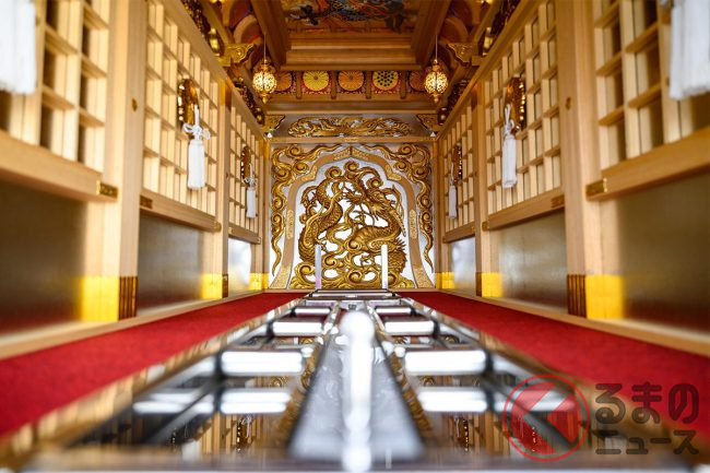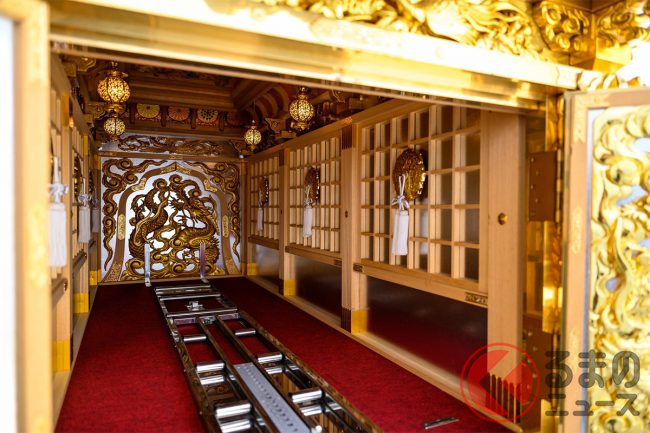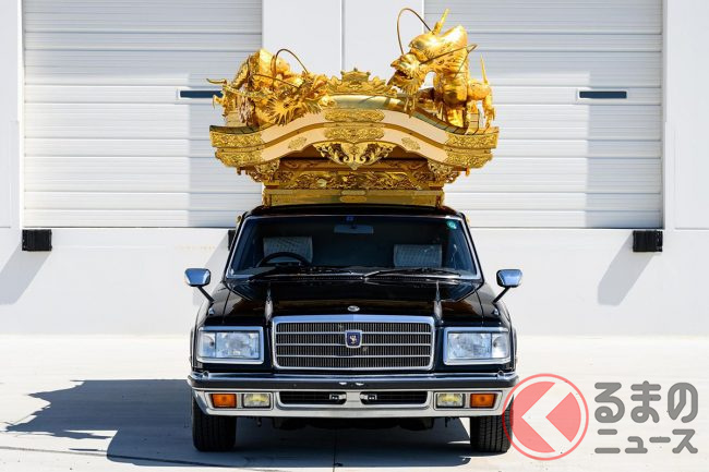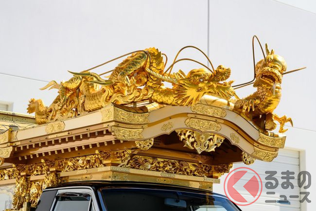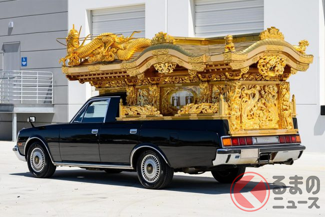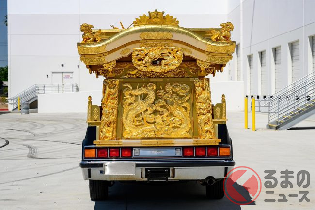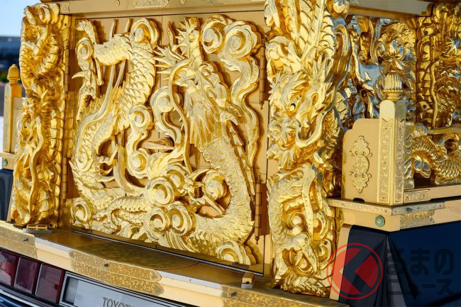 トヨタ「センチュリー超金ピカ仕様」が凄い! 迫力ある「黄金の龍」&「豪華寝台」に驚愕! 宮型モデルが約630万円で米国落札