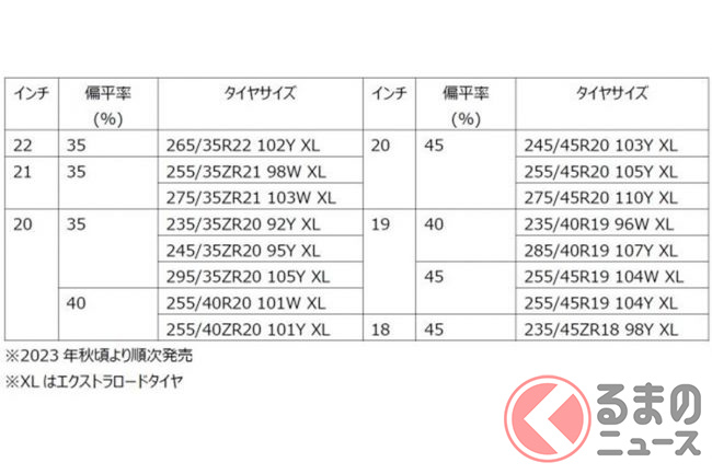 「ADVAN Sport EV」は、同社が新たに展開する電動車対応商品であることを示す独自のマーク「E+(イー・プラス)」を採用した第1弾となる商品。「E+」マークは「低電費」「静粛性」など電動車に特徴的なニーズに対応する技術を搭載したタイヤについて、タイヤサイドへマークを打刻するほか、カタログやウェブサイトなどに表示して、顧客のタイヤ選びをサポートするとのことです。