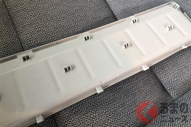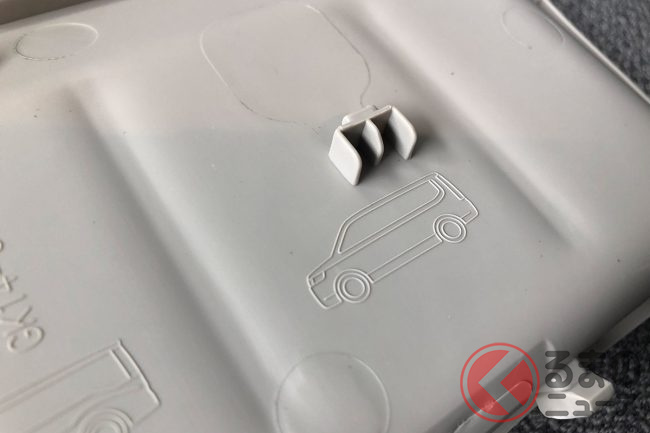 先ほどのインパネトレーをよく見ると、底面が傷まないようにゴム製のマットが敷かれていることが分かります。これを取り外して裏返すと、ようやく「初代から現行モデルまで6世代のステップワゴンのレリーフ」に出会うことができました。