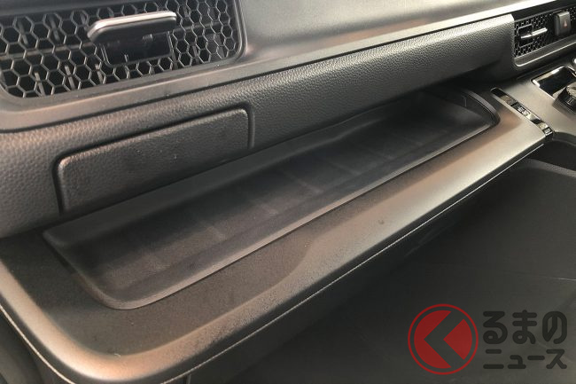 その場所は、助手席側のダッシュボードに収納スペースとして用意された「インパネトレー」。ただし、ただ開いただけでは発見できません。さすが技術屋集団ホンダの遊び心。そう簡単には見つけられないようです。