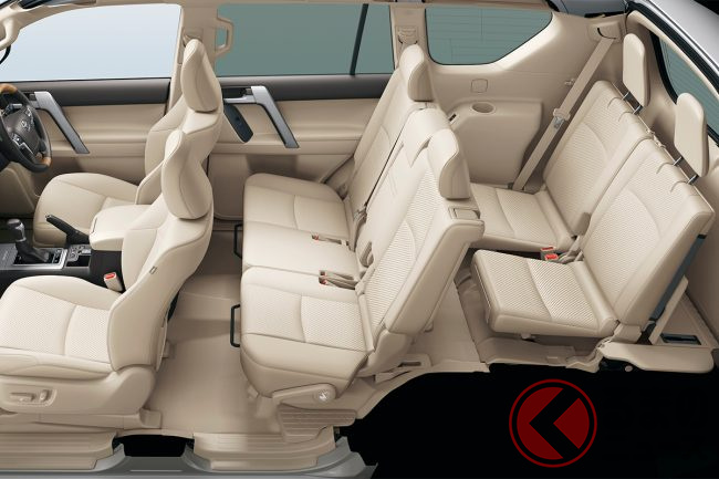 トヨタの本格四輪駆動車「ランドクルーザープラド」は、現行型で4代目。2列・5人乗り仕様に加え3列・7人乗り仕様が設定されています。