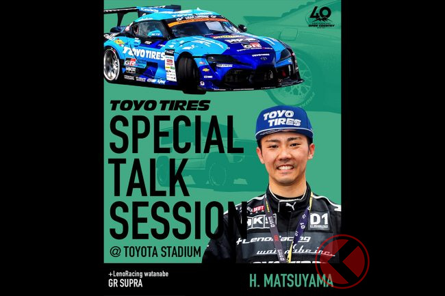 トーヨータイヤのブースではD1GP参戦車両「TOYOTA GR 86」と「TOYOTA GR Supra」が展示されるほか、前回好評を博したカスタムカーショップやパーツメーカーなど約20社の自動車関連ショップによる相談会も実施予定です。