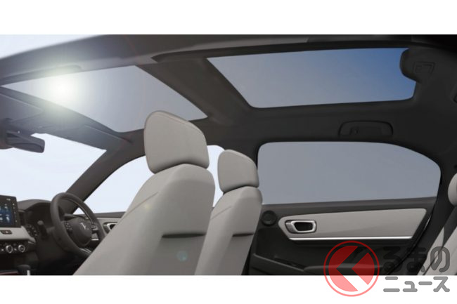 これらの専用装備とともに、e:HEV PlaYにのみ設定されている大面積の「パノラマルーフ」と組み合わせれば、室内を明るく彩ることが可能です。