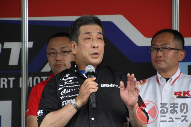 それが「TGR TEAM WedsSport BANDOH」を運営するホイールメーカーの「ウェッズ」が、ヨシムラジャパンのロードレース活動のスポンサーに就任したというニュースで、会場にはウェッズの社長である石田純一氏も駆けつけました。