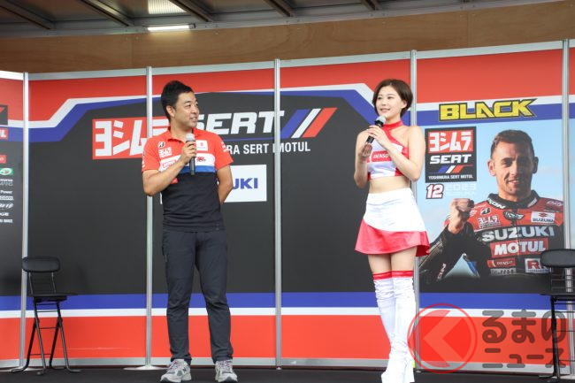 そんな盛りだくさんのヨシムラ ツーリング ブレイクタイムですが、イベント中に同社の「Yoshimura SERT Motul」のチームディレクターを務める加藤陽平氏からサプライズ発表がありました。