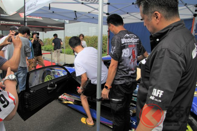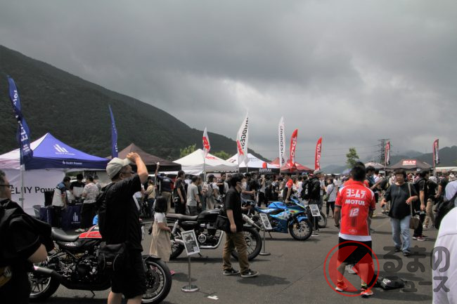今回は「2輪と4輪のジャンルを超えたレーストーク」として、「TGR TEAM WedsSport BANDOH」の坂東正敬監督を招いてのトークショーや、GT500車両の展示もあると事前にアナウンスされていたため、2輪ファンだけでなく、4輪ファンとおぼしき参加者も多く見られたのが印象的でした。