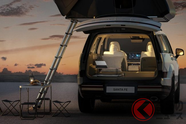 斬新すぎ!「H型ライト」採用の新型「クロスオーバーSUV」世界初公開! 超快適な“豪華内装”の新型「サンタフェ」韓国で登場